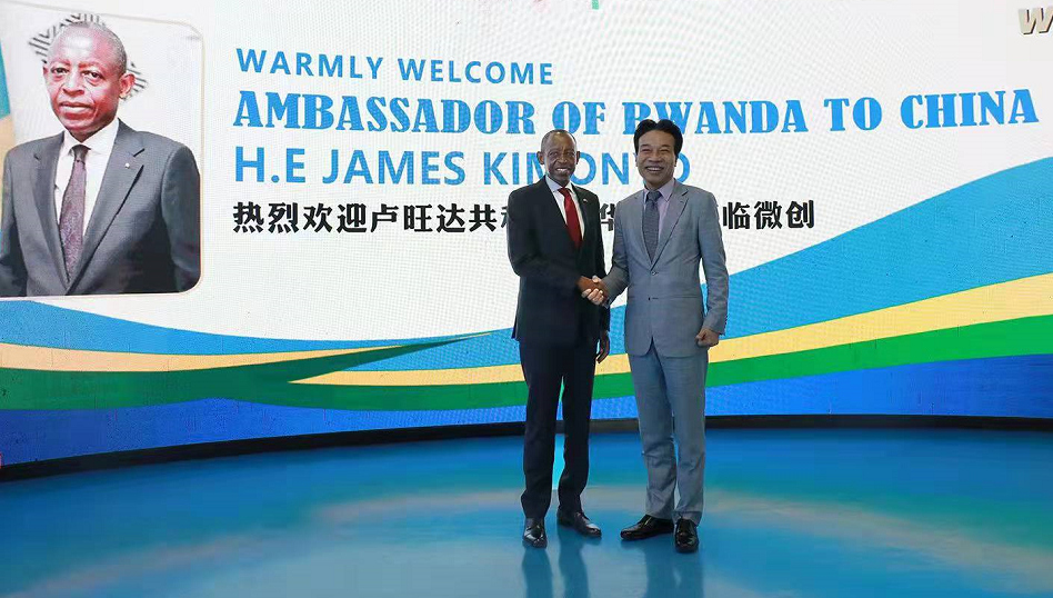 2021年12月15日,卢旺达驻华大使詹姆斯·基莫尼奥(H.E James Kimonyo)阁下参访了上海微创软件股份有限公司,并与微创中国董事长唐总就使馆与微创的友好合作交换了意见。